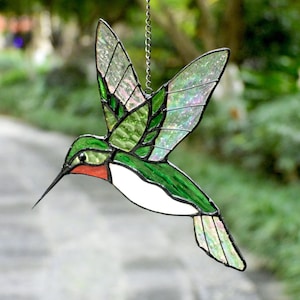 100% Handmade Stained Glass Window Decor,Handmade Glass Hummingbird,Suncatcher Glass Birds,Home Decor,Wall ArtGift for Mom,Mother‘s Day Gift