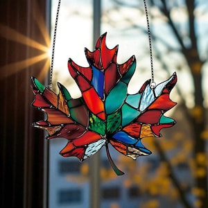 Colorful Maple Leaf Acrylic Suncatcher, Faux Stained Glass Autumn Window Hanging, Seasonal Harvest Decor, Cozy Fall Nature Inspired Ornament