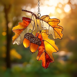 Acorn & Maple Leaf Acrylic Suncatcher: Autumn Farmhouse Decor